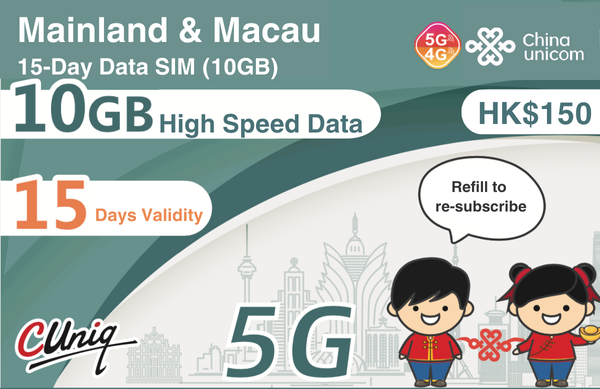 Kad Data Tanah Besar China & Macau 15 Hari (10GB)