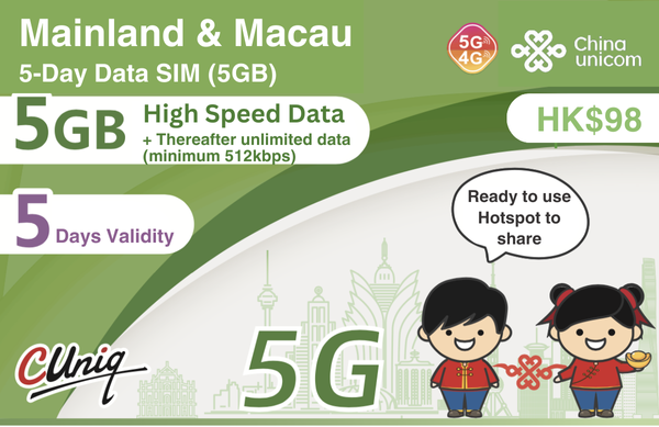 Kad Data Tanah Besar China & Macau 5 Hari (5GB)
